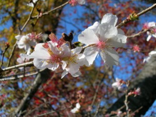 勤労感謝の日、天気予報通りに朝方の雲が次第に取れていき、青空が見えてきた。陽射しと共に気温が上がり、ドライブ日和になってきたので、気になっていた「冬桜」を見に行くことにした。 群馬県藤岡市に鬼石(おにし)というところがある。ここの桜山には冬…