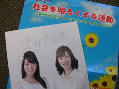 Paix2と書いて「ぺぺ」と読むのだそうだ。ManamiさんとMegumiさんの女性デュオである。この日の衣装は真っ赤なドレスと白いパンツスーツの二人だった。 「社会を明るくする運動」の活動の一環で当地で開催された催しで、このPaix2がトークとコンサートをしてくれたのを見…